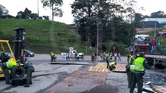 FOTOS: Policía descubrió en Caldas lo que sería un alijo de marihuana oculto en un camión