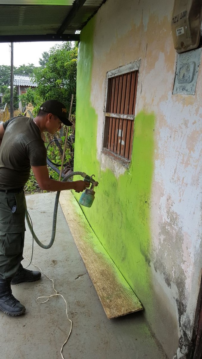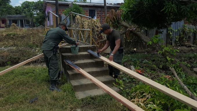 Gracias a la ayuda de la comunidad se logró recolectar el material para la remodelación y fueron los agentes de Policía los encargados de la mano de obra.