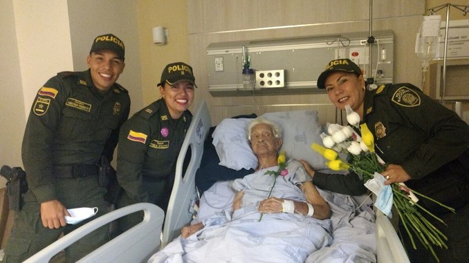 Los uniformados acudieron con flores al Hospital General de Medellín y a la Clínica León XIII, para brindarles un momento de alegría.