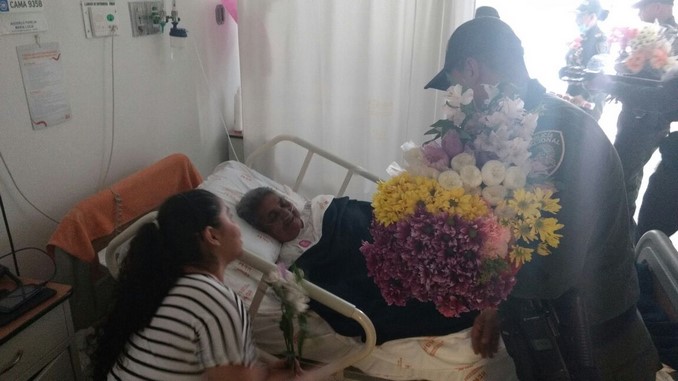 Los uniformados acudieron con flores al Hospital General de Medellín y a la Clínica León XIII, para brindarles un momento de alegría.