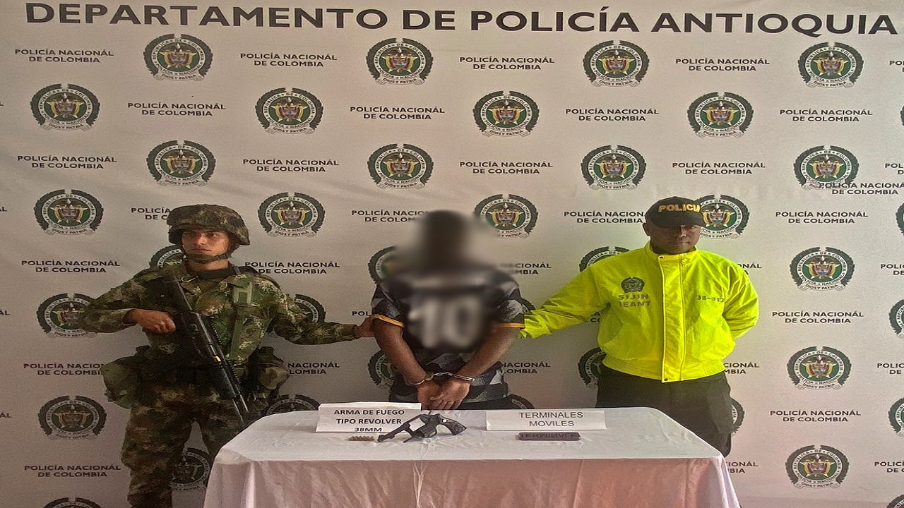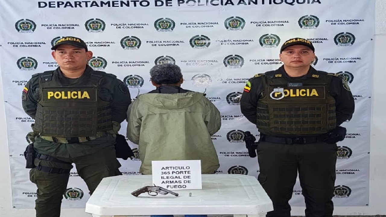 En el municipio de Urrao en zona rural, fue capturado en flagrancia un hombre de 18 años conocido como “Jordán”, por el delito Fabricación, tráfico, porte o tenencia de armas de fuego, accesorios, partes o municiones Art. 365 C.P. se halló en su poder 01 arma de fuego tipo revólver, marca Smith & Wesson, calibre 38 mm, 06 cartuchos calibre