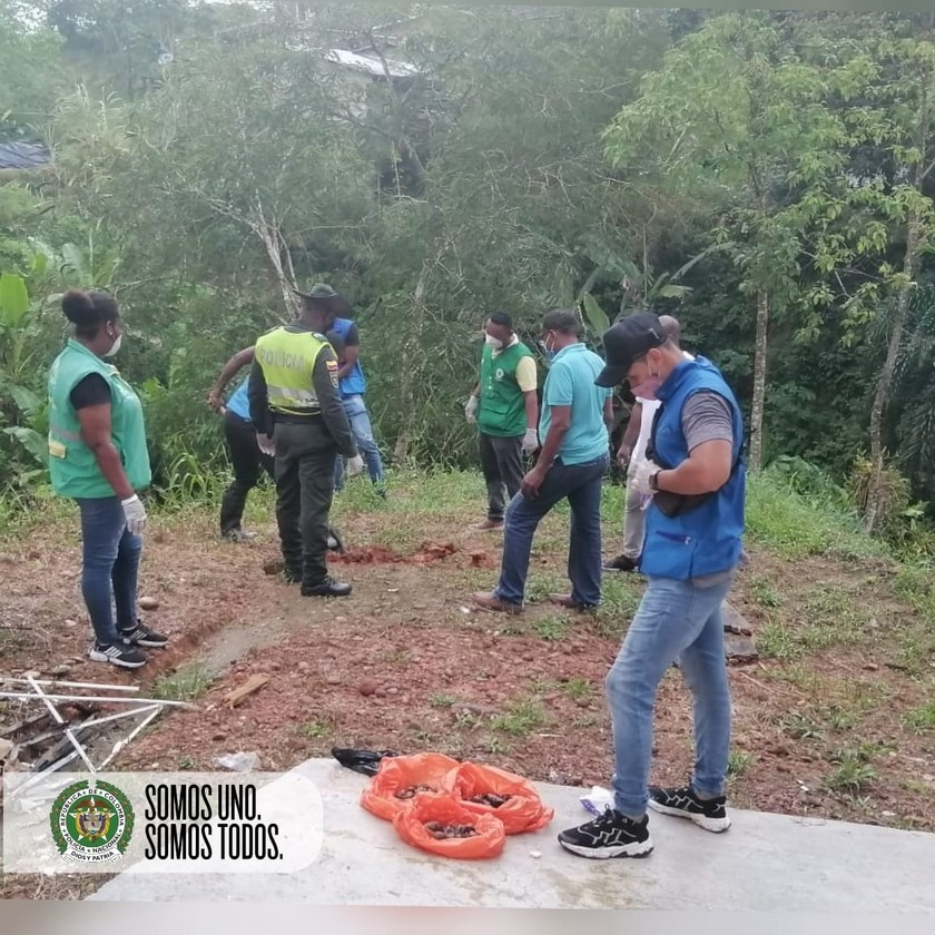 La Policía Nacional informó que gracias al llamado oportuno de la comunidad, fueron recolectados en el barrio Los Castillo de Quibdó, Chocó 5 kilos de caracol gigante y enterrados bajo tierra con todas las medidas de seguridad y salubridad para desintoxicar este sector de la población.