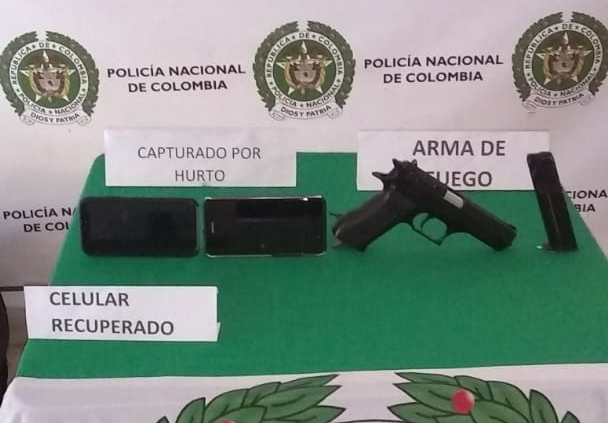 En la cuenta oficial de twitter de Policía Medellín, el Brigadier General Eliecer Camacho Jiménez dijo que “#Medellín Dos celulares avaluados en 6 millones de pesos, un taxi inmovilizado y dos capturados con un arma de fuego, quedaron a disposición de la @FiscaliaCol, en un hecho de hurto frustrado por nuestra patrulla del #Cuadrante en el barrio Conquistadores. #TodosContraElHurto”.