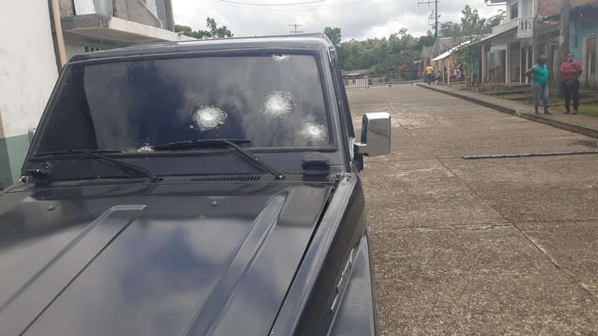 Según lo indicó la Policía, justo cuando iban a pasar por un reductor de velocidad a la altura del corregimiento de Chintadó fueron impactados por armas de fuego propinándoles varios impactos de proyectil.