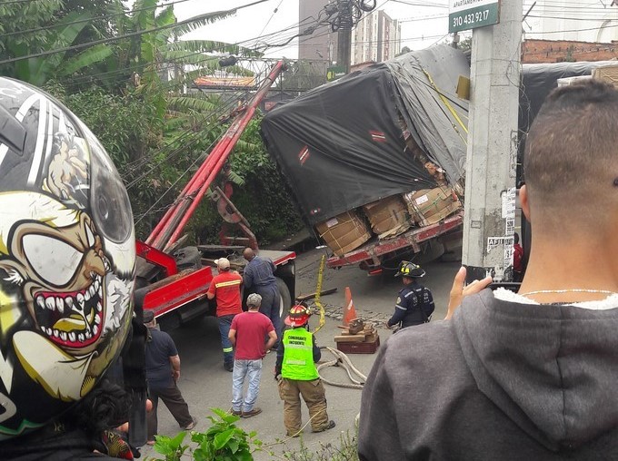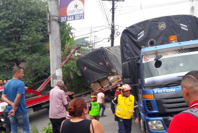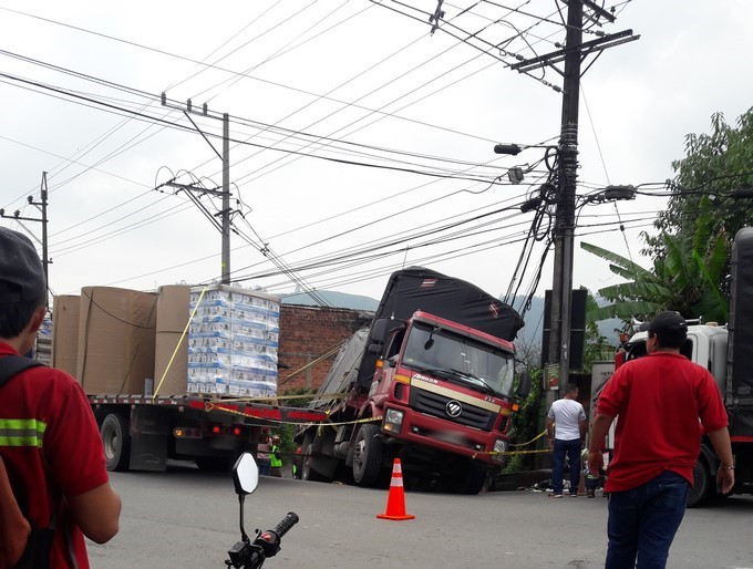 Según versiones de los testigos, un camión que se movilizaba por la vía, casi termina volcado por completo. Al parecer, debido a la cantidad de carga que tenía el vehículo, este se desestabilizó y terminó sobre dos llantas.