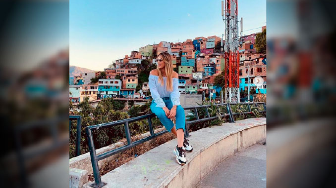 La modelo y empresaria paisa Daniela Ospina, recorrió las bellas calles de San Javier y publicó una serie de imágenes, pero no estuvo sola en el recorrido, el director audiovisual Harold Jiménez también mostró fotos en las coloridas calles del ‘Graffitour’.