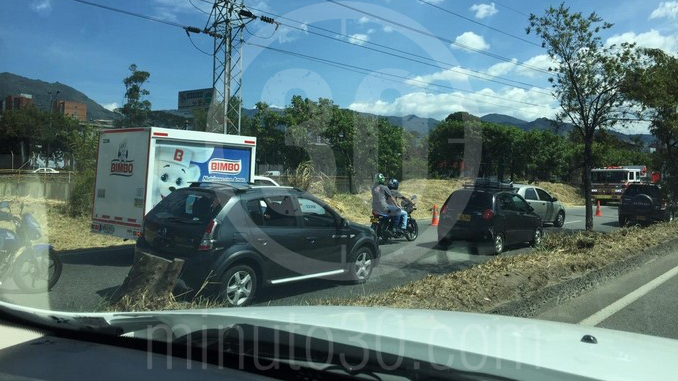 Lo que sería una quema sobre el césped a un costado del río Medellín tuvo que ser controlada por el Cuerpo de bomberos de la ciudad y la llegada del camión dificultó la movilidad por esta zona del sur del Valle de Aburrá.