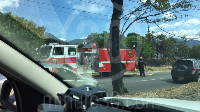 Lo que sería una quema sobre el césped a un costado del río Medellín tuvo que ser controlada por el Cuerpo de bomberos de la ciudad y la llegada del camión dificultó la movilidad por esta zona del sur del Valle de Aburrá.