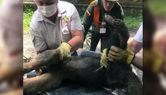 FOTOS: Rescataron a un oso hormiguero que fue atropellado por un vehículo