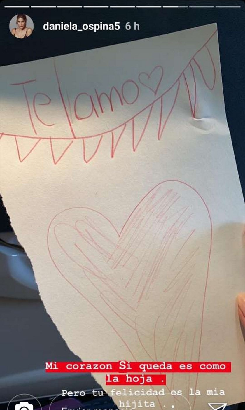 “Te voy a extrañar chiquita mía, disfruta con tu papá, tu hermano y su familia, te amo con todo mi corazón, mamá intensa”, compartió varias instantáneas en la que mostró la carta que le hizo la pequeña en que manifestó que la ama y le dibujó un corazón enorme.