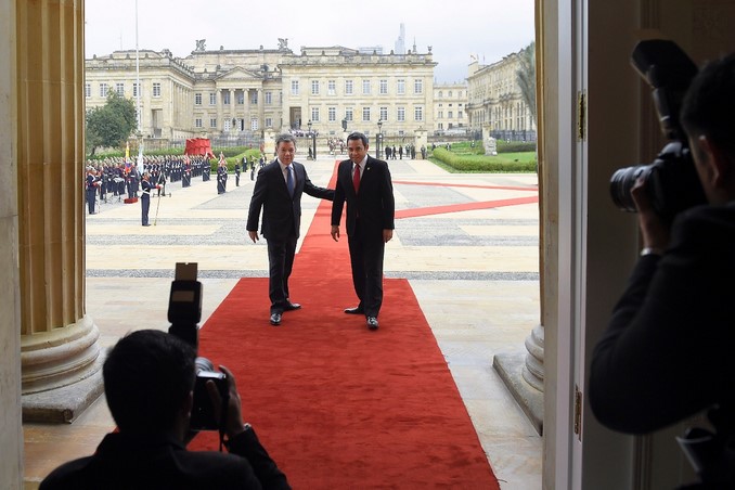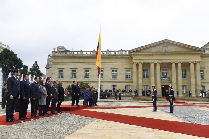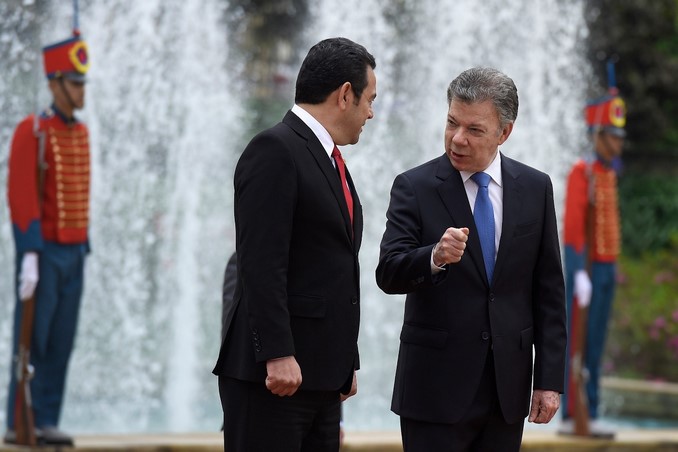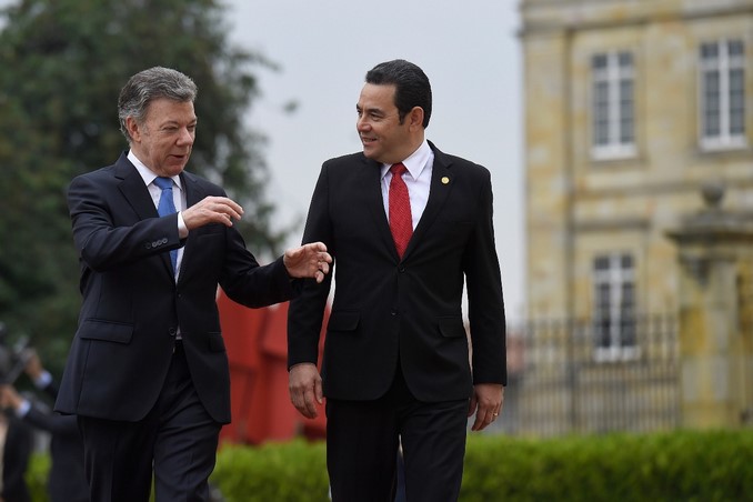 El presidente Juan Manuel Santos recibió con honores militares en la Casa de Nariño a su homólogo de Guatemala, Jimmy Morales, quien realiza su primera visita oficial al país.