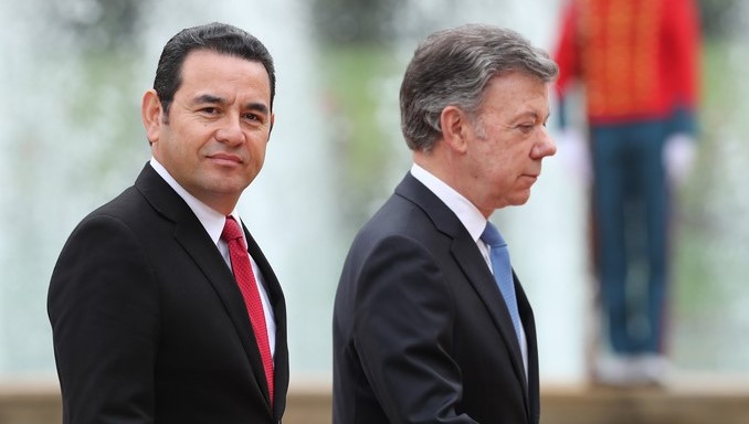 El presidente Juan Manuel Santos recibió con honores militares en la Casa de Nariño a su homólogo de Guatemala, Jimmy Morales, quien realiza su primera visita oficial al país.