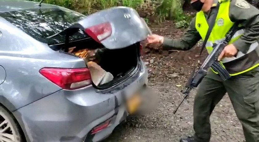 Es allí donde observan un vehículo tipo automóvil, en actitud sospechosa que trata de evadir el puesto de control e inicia huida por una vía que conduce al municipio de Támesis.