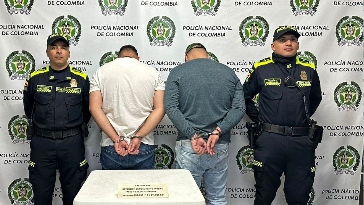 En zona urbana del municipio del El Retiro fueron capturados dos hombres de 29 años, requeridos mediante orden judicial, emitida por el juzgado 14 Penal Municipal de Medellín, por los delitos falsedad ideológica en documento público.