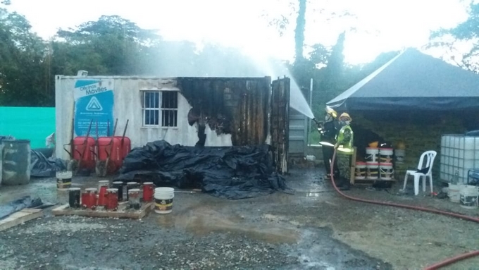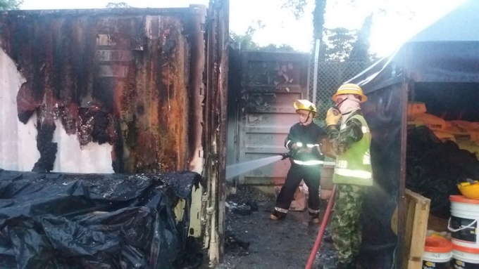 El fuego habría iniciado alrededor de las 5:45 pm de hoy 14 de septiembre por un corto circuito al interior de un container que contenía pintura.