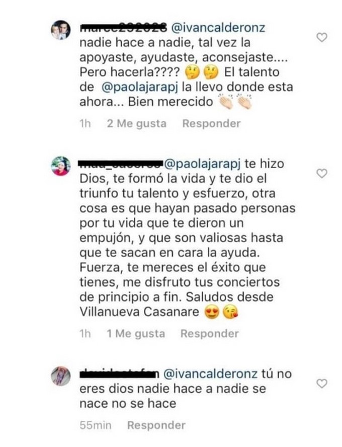 Luego de eso, llegaron comentarios de todo tipo que critican a Iván: “Qué comentario tan machista y fuera de contexto de un hombre tan admirable y con un talento enorme. La verdad ella ya tenía el talento incluido, sino su esfuerzo se perdería”, “ella no se hizo por nadie, ella es una mujer espectacular que es la que es por ser talentosa”, aunque otros piensen diferente “ella es lo que es gracias a Iván, no se nieguen a esa realidad, no la conocía nadie”, entre otros.