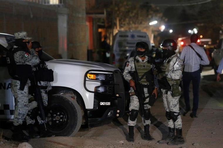 Elementos de la Guardia Nacional resguardan la zona donde se registró un tiroteo en el municipio de Tonalá, en Jalisco. EFE/ Francisco Guasco