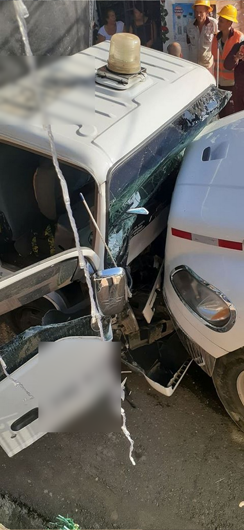 Por su parte, también indicaron que en el vehículo que al parecer presentó la falla mecánica iba, además del conductor, un niño, que habría saltado del vehículo momentos antes de estrellarse. Así quedó el camión involucrado: