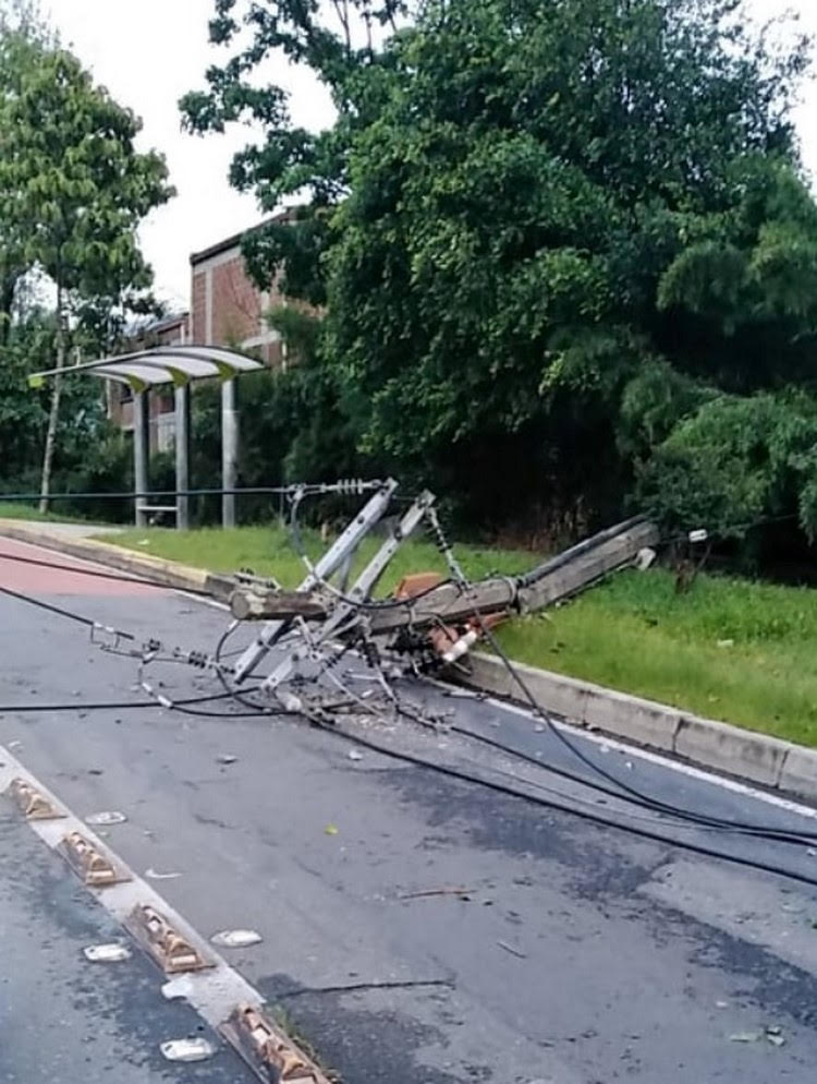 📢Poste de luz caído sobre la 80 antes de llegar a la glorieta de la 80 con la 80. Tener precaución⚠️@EPMestamosahi @DAGRDMedellin