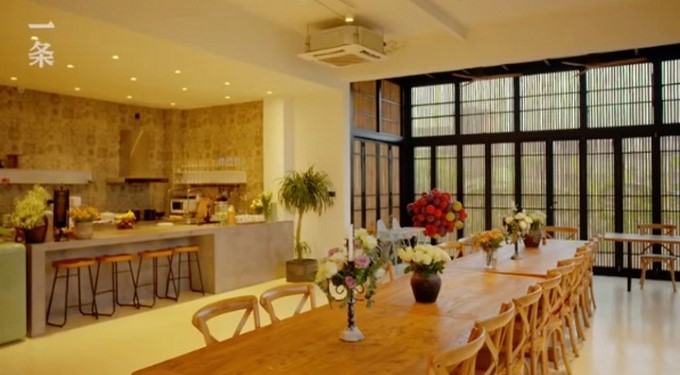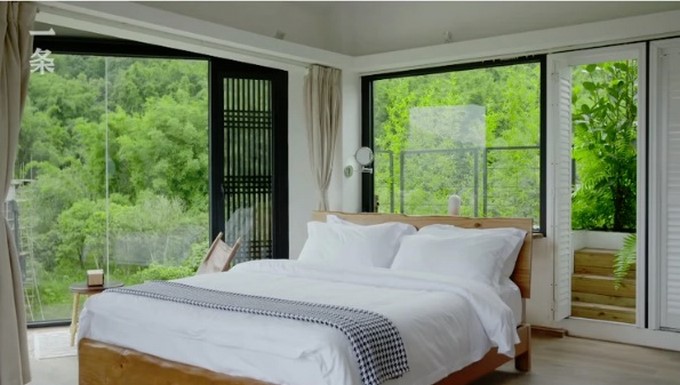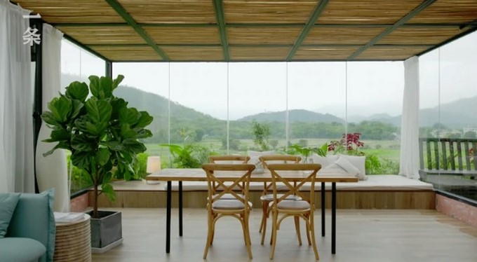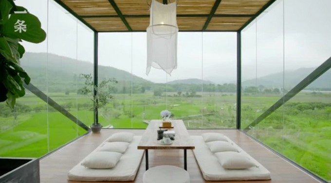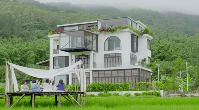 La casa consta de tres pisos que fueron divididos de esta manera, la primera cuenta con una sala, una cocina rústica y la mejor vista para los campos de arroz, asimismo, una extensa mesa de comedor suficiente para albergar a toda la familia. En los superiores hicieron habitaciones para cada una de ellas que cuentan un suelo tejido de paja y ventanas de vidrio para tener una mejor vista de la pequeña villa arropada por un manto verde.