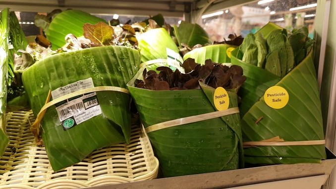 Un supermercado tailandés perteneciente a la cadena “Rimping” encontró en las hojas de plátano el sustituto perfecto para reducir el uso del plástico, ahora envuelve los alimentos con el producto natural.