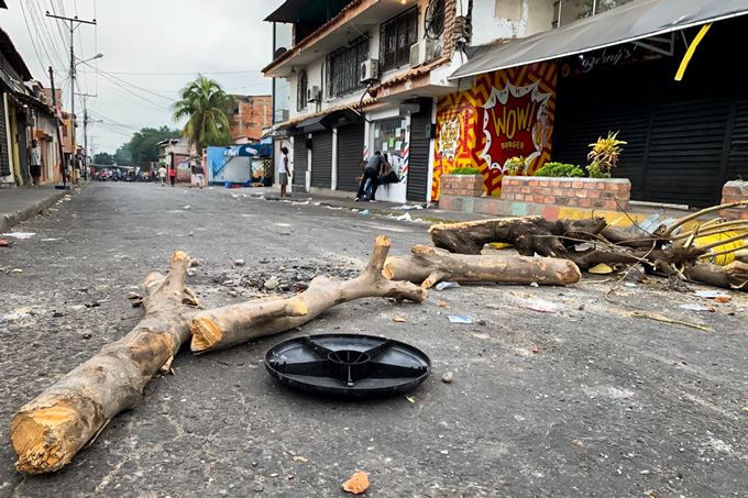 La vía que conduce directamente al puente internacional Francisco de Paula Santander, uno de los cuatro que conecta Colombia y Venezuela, tiene hoy vidrios y palos a lo largo de varios metros en los que se enfrentaron ayer las fuerzas del orden y cientos de ciudadanos que exigían que se permitiera el ingreso de las donaciones almacenadas en la ciudad colombiana de Cúcuta.