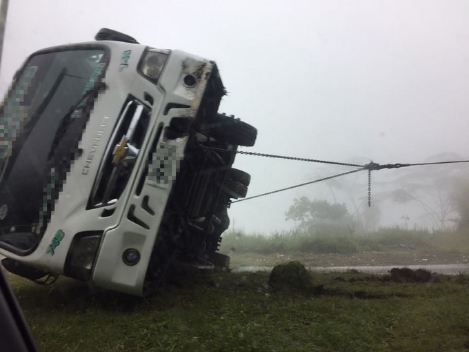 Un vehículo de los que hace ruta hacia el aeropuerto José María Córdova se volcó esta madrugada a un kilómetro del peaje en descenso sobre la autopista Medellín-Bogotá.