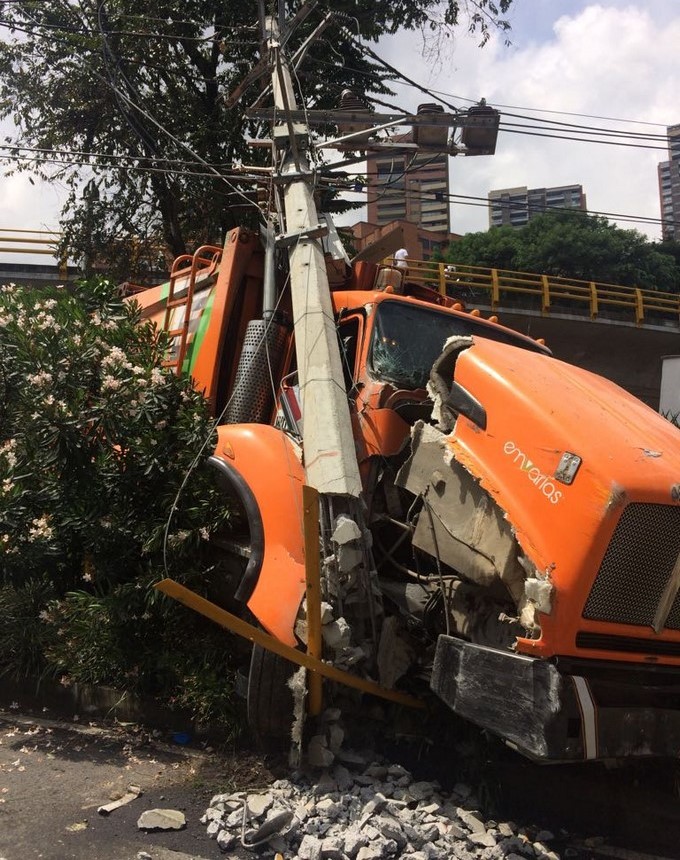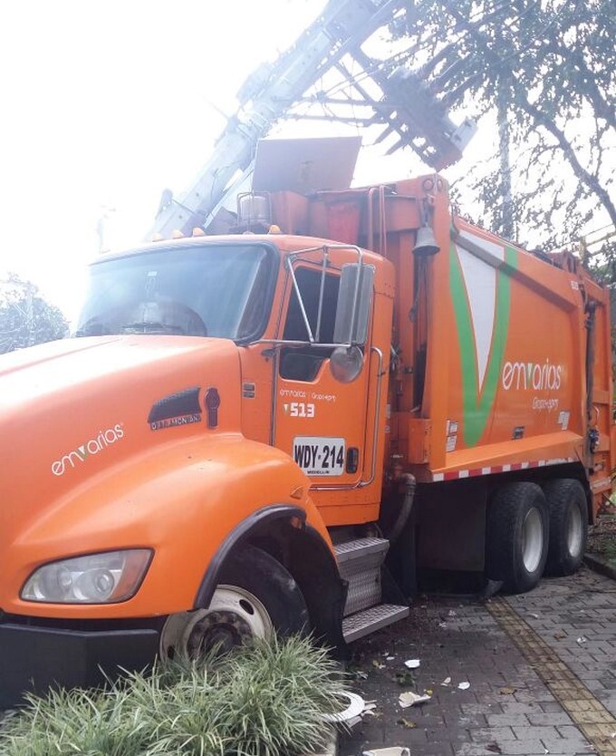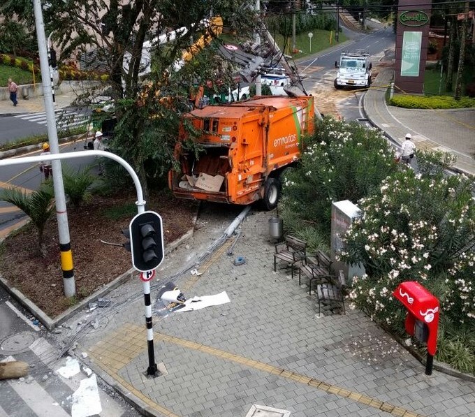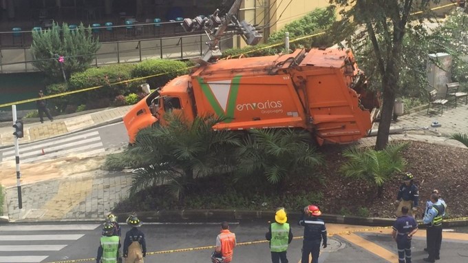 Vehículo recolector de basuras perdió los frenos. TOMADA DE: @BernardoAGuerra