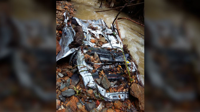 En redes sociales fue compartida una imagen donde se observa el vehículo después de ser llevado por la creciente y se evidencian los graves daños que sufrió.