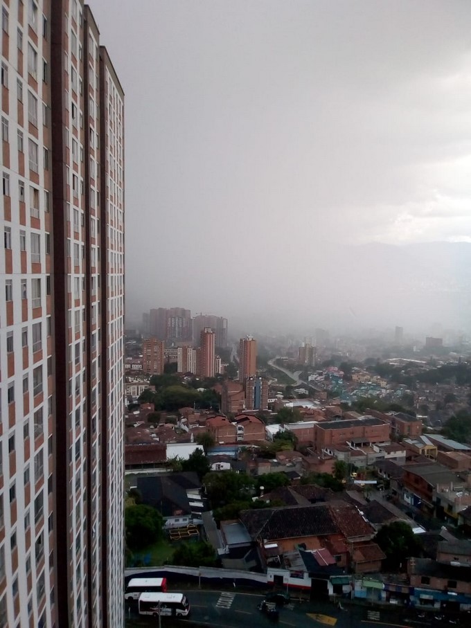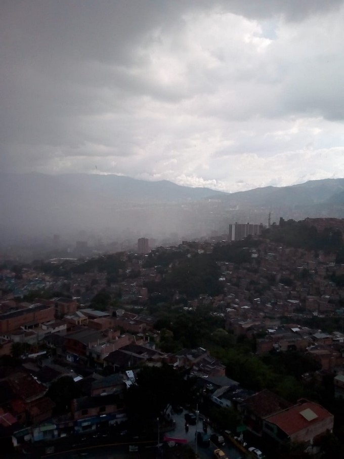 Así se ve el aguacero que cae en la tarde de este sábado primero de diciembre desde diferentes zonas del Valle de Aburrá.