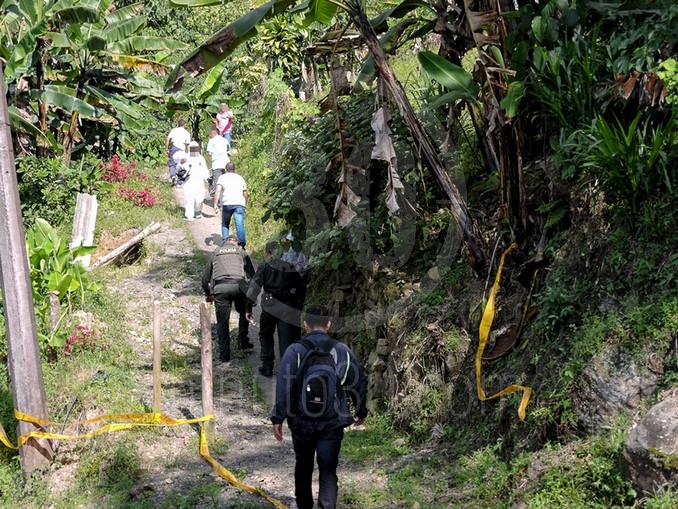 Agentes del CTI realizaron la inspección técnica de los cadáveres. Se presume que la cabeza que fue hallada el pasado viernes en un sendero cercano, corresponde a uno de los cuerpos.