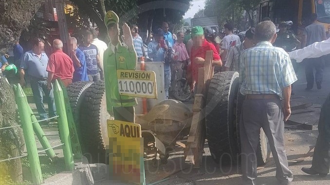 Sobre las 4:00 de la tarde de este miércoles 5 de abril, una volqueta que se movilizaba por la avenida 80, en cercanías a la calle San Juan, perdió el eje y sus llantas traseras.