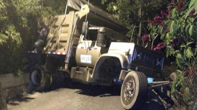 EN FOTOS: Volqueta se quedó sin tracción delantera y bloqueó doble vía en Sabaneta