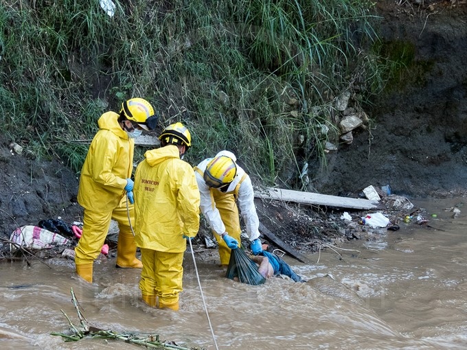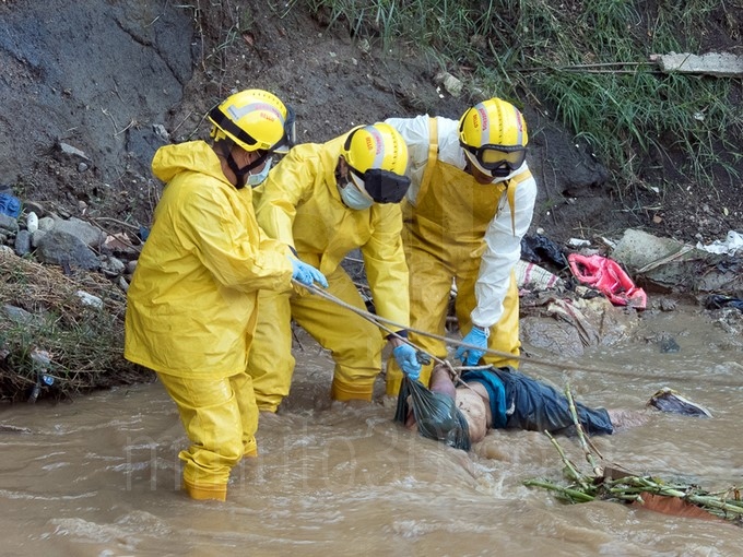 Tras la recuperación del cadáver, agentes judiciales realizaron la inspección técnica al occiso.