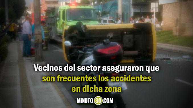 Minuto30.com- Un aparatoso accidente se presentó hace pocos minutos en El Poblado, en el cual un vehículo tipo taxi resultó volcado sobre la vía, en hechos ocurridos en la carrera 43c con calle 8.