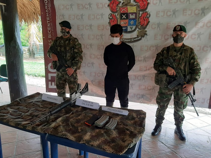 El Ejército logró en medio de fuertes combates contra los Grupos Armados Organizados, la captura de un presunto integrante de Los Caparros en la vereda Pecoralia en zona rural del municipio de Tarazá.