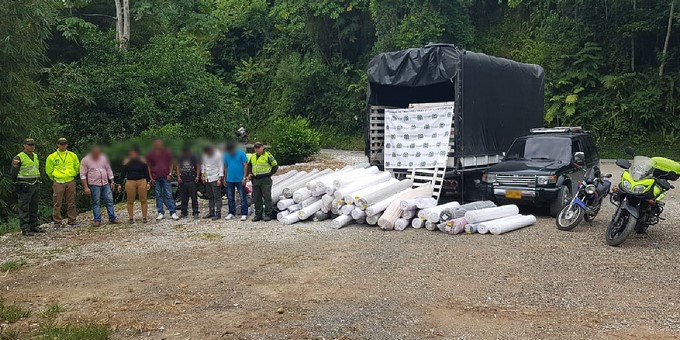 Mediante labores de patrullaje, inteligencia e investigación por parte de las unidades adscritas a la Seccional de Tránsito y Transporte en la vía entre el municipio de Santuario y Cocorná, sector conocido como Caño Alegre, se registró un vehículo tipo camión donde se hallaron 215 rollos de tela, avaluados en $450.000.000.