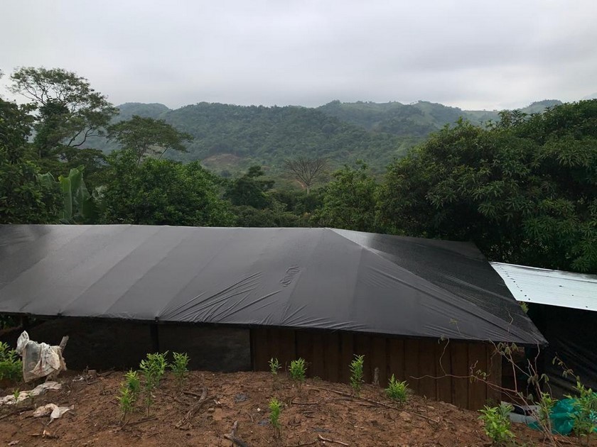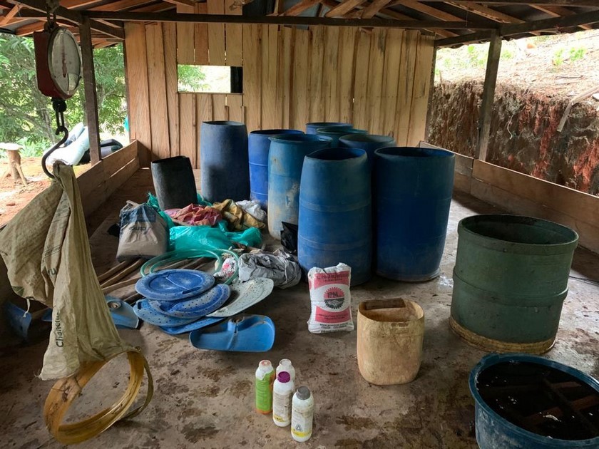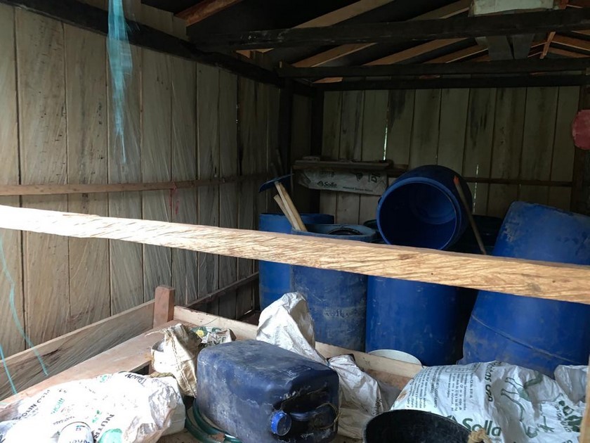 En el sitio fueron destruidos de manera controlada 100 litros de líquido procesado de pasta base de coca, 55 litros de ACPM, 40 litros de gasolina, 40 litros de cal, 20 kilogramos de amoniaco, bultos de cemento y elementos para el procesamiento de alcaloides.