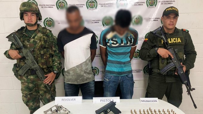 Unidades Policiales adscritas al Modelo de Vigilancia Comunitaria por Cuadrantes de la Subestación de la Caucana en coordinación con el Ejército Nacional verificaban información previa de una persona herida con arma de fuego, y fue allí donde observaron a dos sujetos sospechosos a quienes se les solicitó registro personal, hallándose en su poder un arma de fuego tipo revólver, un arma de fuego tipo pistola, 78 cartuchos de diferentes calibre.