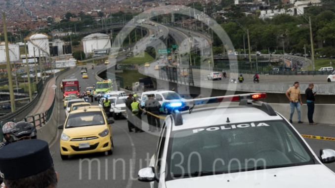 Según el reporte, el sujeto de la camioneta que iba en contravía impactó a tres motocicletas, incluyendo vehículos de la Policía, ocasionando la muerte de un civil que cayó a la parte inferior del puente.