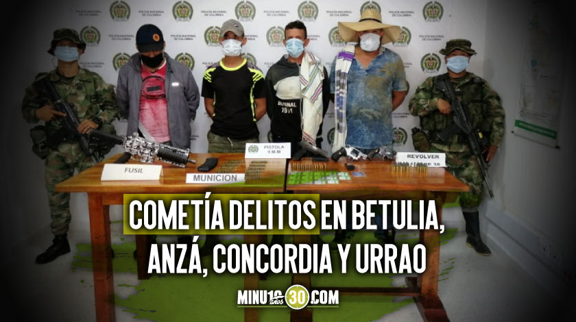 Finalmente se detalló que el capturado es objetivo militar de interés regional (OMIRE), según lo estableció en un consejo de seguridad el señor ministro de Defensa, con el agravante de que presuntamente venía atemorizando a los habitantes de los municipios de Betulia, Anzá, Concordia y Urrao.