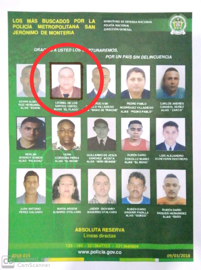 Este sujeto hace parte de los delincuentes más buscados del departamento de Córdoba y tiene orden de captura vigente por el delito de concierto para delinquir agravado, y era el encargado de realizar acciones criminales contra la Fuerza Pública, relacionado en actividades de desplazamiento forzado afectado a la población civil.