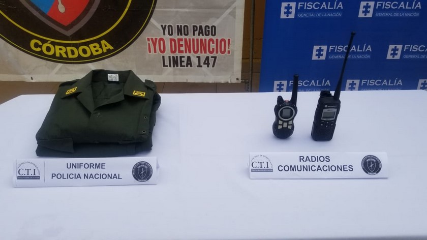 Así mismo, durante la operación le fue incautado un uniforme de uso privativo de la Policía nacional, así como equipos de comunicaciones.