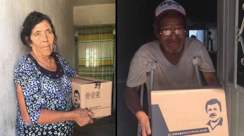 Se trata de paquetes de ayudas que ha comprado y entregado en Guadalajara la hija del narcotraficante que se encuentra preso en Estados Unidos, y llamó la atención que las cajas en las que se entregan los víveres están marcadas con la cara de Guzmán Loera.