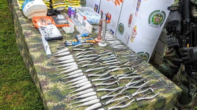 En el sitio fueron incautados elementos odontológicos usados para atender a los integrantes de este grupo armado organizado, con el fin de evitar su traslado a áreas urbanas. Entre el material incautado había 500 fresas dentales, 300 eyectores de saliva, 170 carpules de anestesia, 144 juegos de fresas para profilaxis, 102 agujas para anestesia, 20 aparatos calzadores, 4 kilos de yeso para calzas, entre otros elementos usados para la atención odontológica.