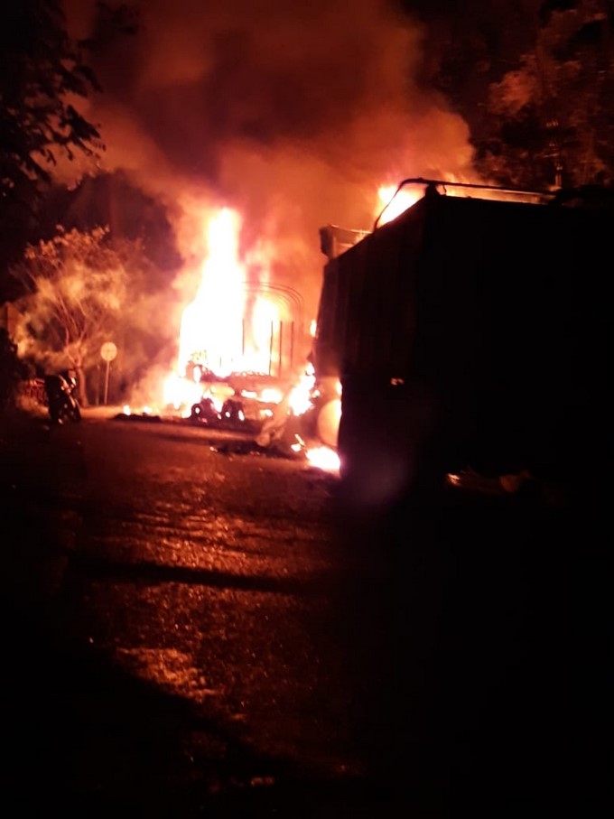 Según se pudo conocer, hubo una alteración al orden público que derivó en el inicio al fuego a estos dos camiones, que transitaban por el sector de Crucesitas.