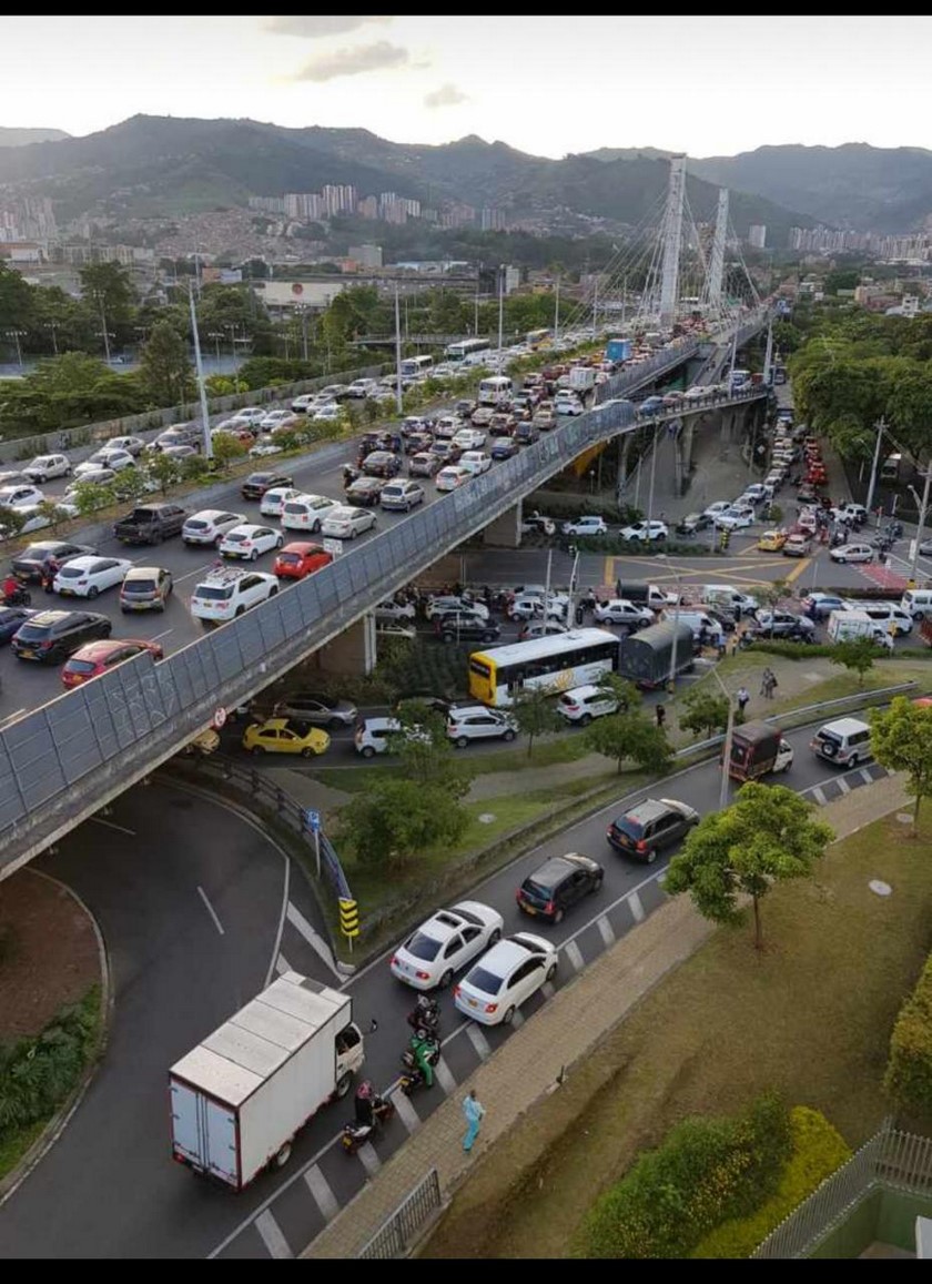Uno de los puntos más críticos es el del puente de la 4sur, ubicado entre El Poblado y Cristo Rey. Allí la movilidad está nula, y algunas personas han compartido imágenes de cómo está la situación actualmente.
