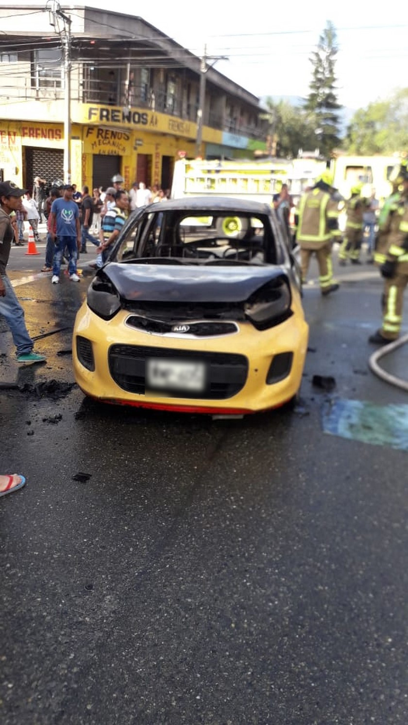 Al lugar llegaron los bomberos para apagar el incendio. Al parecer el conductor del vehículo fue remitido a un centro asistencial.