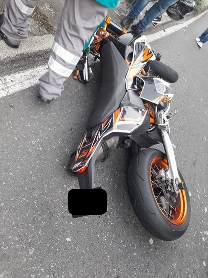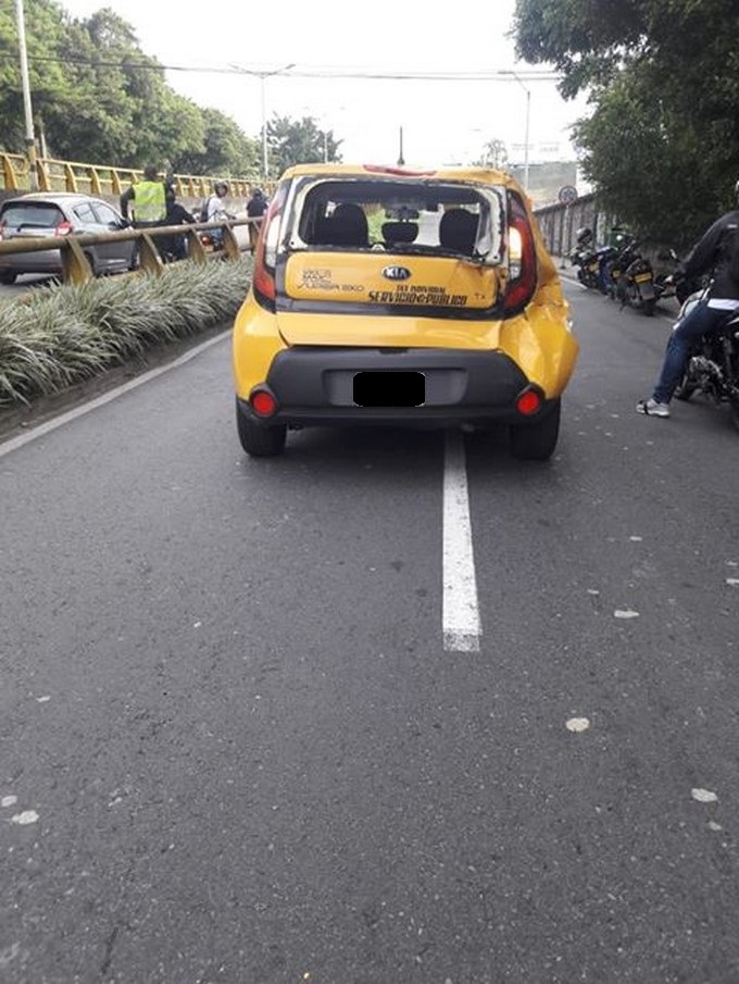 En las imágenes enviadas por algunos de nuestros seguidores, se puede ver al hombre con varios tatuajes en el piso, y se ve cómo el taxi quedó de golpeado en la parte trasera, pues todo su vidrio posterior resultó quebrado y tiene un par de huecos en su estructura. Por su parte, la motocicleta terminó tirada, y regó su combustible.