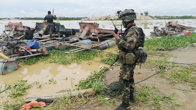 En desarrollo de operaciones militares, tropas del Ejército Nacional de manera conjunta, coordinada e interinstitucional con la Armada, la Fuerza Aérea, la Policía y la Fiscalía, lograron atacar las rentas criminales del Clan del Golfo derivadas de la explotación ilícita de yacimientos mineros.